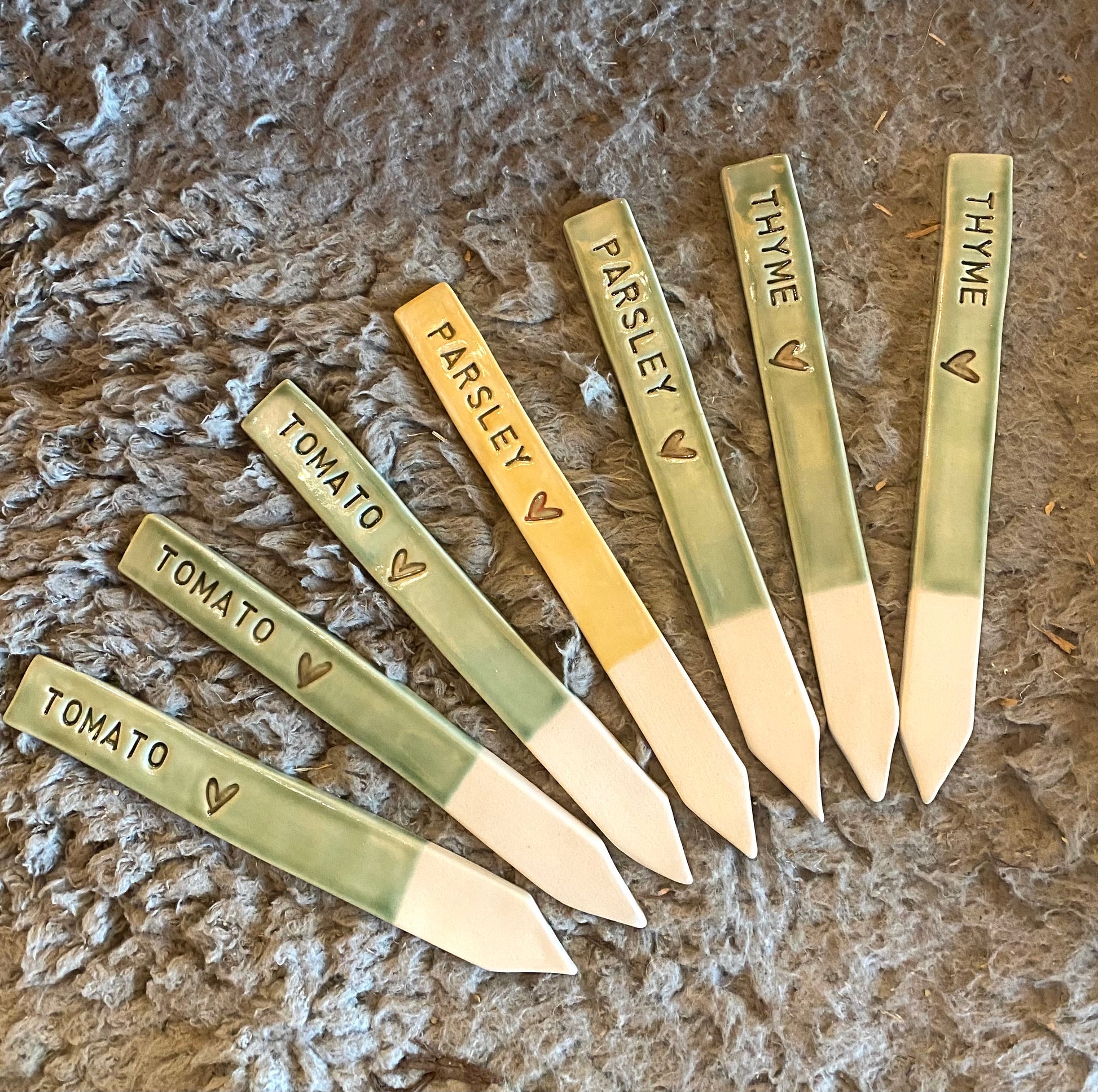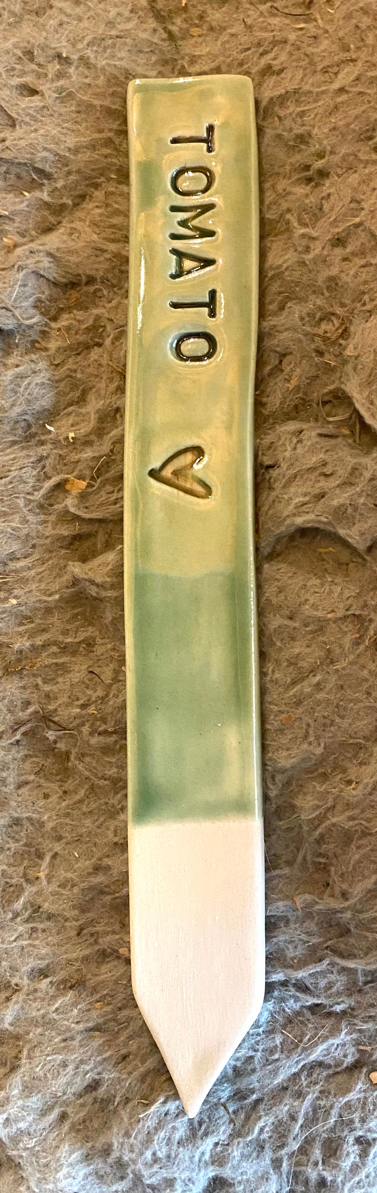 Green garden marker, tomato.